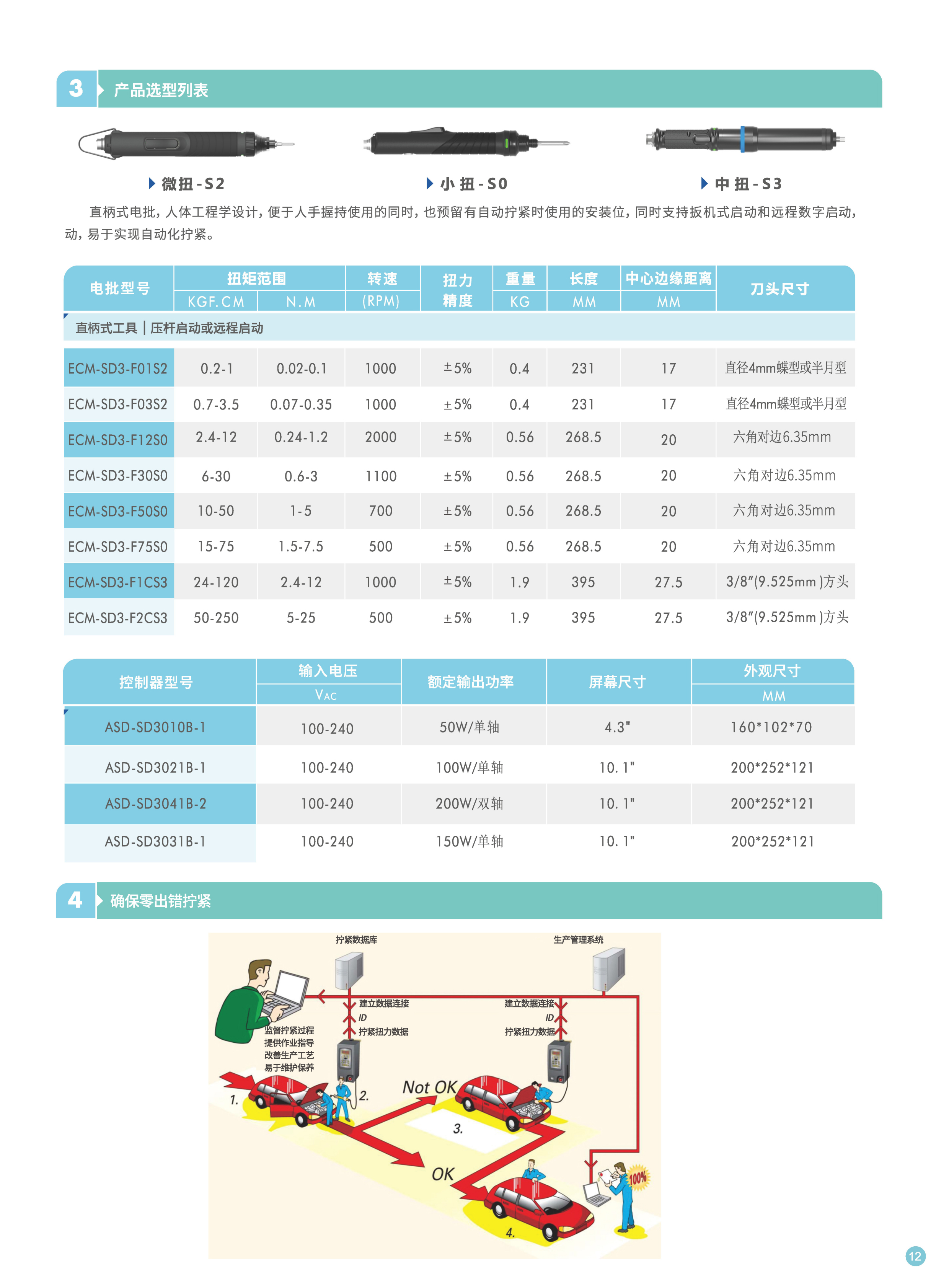 臺達(Delta)高精度智能電批 ECM-SD3,內(nèi)置高精度扭矩傳感器,在ISO5393國際標準下(6個σ)可實現(xiàn)5%擰緊精度,并提供扭力數(shù)據(jù),實現(xiàn)對擰緊過程的實時監(jiān)控,具有25萬次擰緊免維護的高耐用性